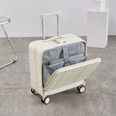 Vordere Öffnung Design Koffer ABS PC Material Koffer mit USB-Ladeans chluss und faltbarer Becher halter