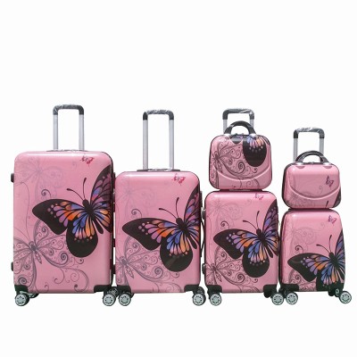 ABS PC gedruckte Muster Anti-Fall-Gepäck-Reisetasche 4-Rad-Trolley-Box 6-teiliges Set Großhandel